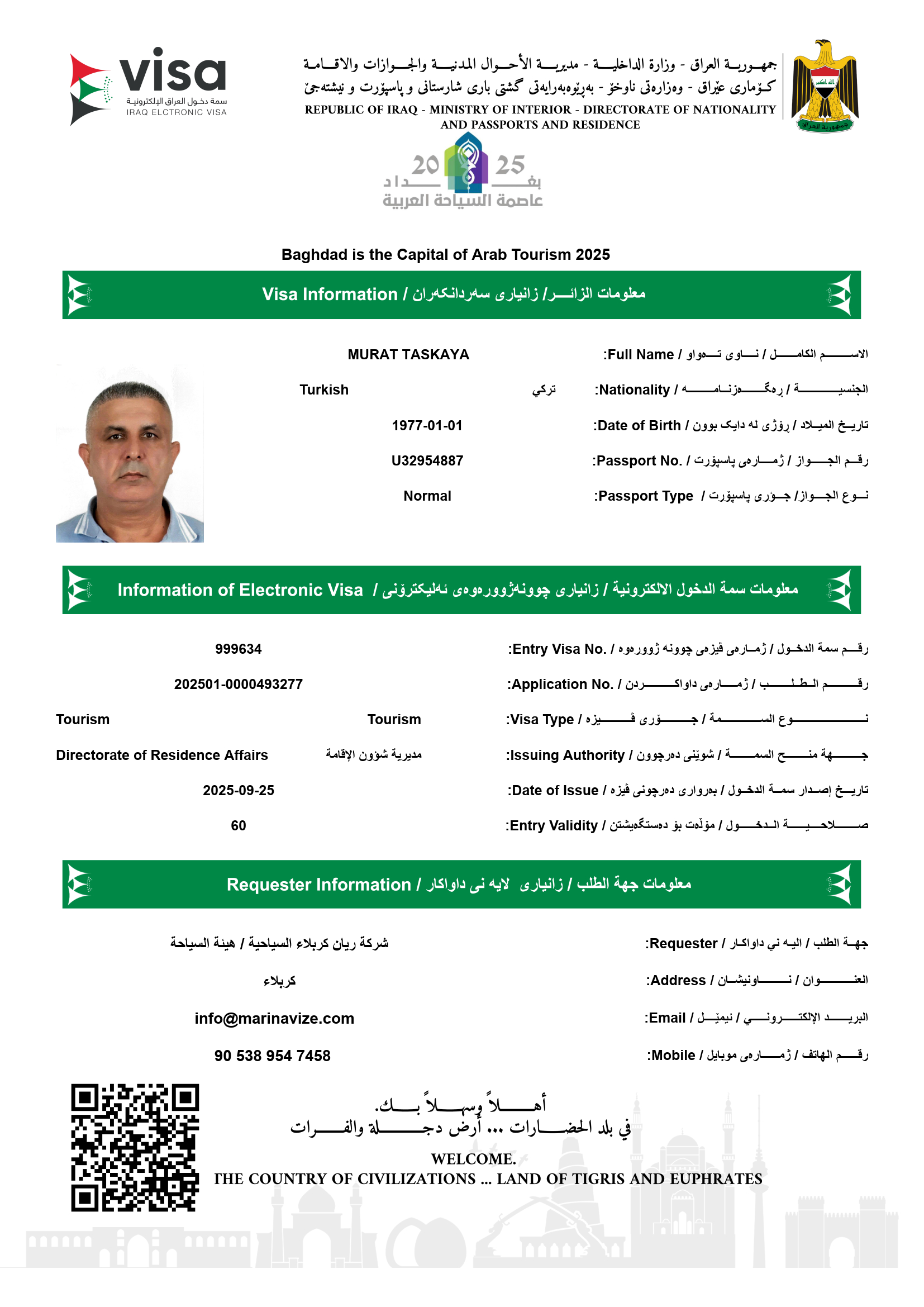 • Irak Vize Ücreti 2025 tablosuna Kargo & Kurye ücretleri dâhil edilmemiştir, Müşteriye aittir.